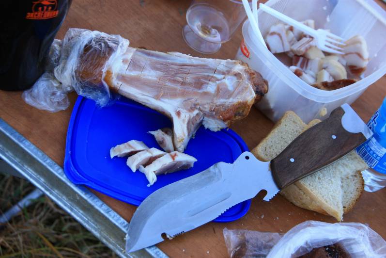 | Вот в этом болотце мы и расставили свои снасти незамысловатые. А Саша стал упражняться спиннингом. Естественно выпили, естественно закусили. Всю еду смели подчистую.