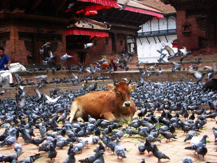 | Торговки цветочными гирляндами,священные коровы на площади,окно,где появляется воплощенная богиня Кумари. Далее мы посетили Обезьяний храм.Название говорит само за себя.Вообще это не одно здание,а целый комплекс.Зашли в лавочку,поискать головной убор,я сглупила не покрыв голову,солнце так долбило,что меня стало мутить.Нашла местную тюбитейку,в коей и проходила всю поездку,но самое интересное не это,а поющие чаши,продававшиеся там же.Продавец этих чаш решил на мне продемонстрировать их действие...Друзья мои,ничего подобного я в жизни не испытывала...Чаши имеют разный диаметр и разное звучание,для каждой есть 3 варианта палочек с набалдашниками,обтянутыми тканью.Сначало действие проискодило стоя.Он подносил чашу к сере дине грудной клетки и ударял по чаше,вибрация исходившая от нее пронизывала насквозь.Затем,уложив меня на коврик,поставил одну у изголовья,одну в ногах,одну опять же на грудь и началось...Ударяя по верхней,затем по нижней и той что стояла на мне,он создавал немыслимую вибрацию с ног до головы,в мозгах стали появляться звуки,похожие на мантры,затем чаша стоявшая на мне перемещалась на другую чакру и все повторялось.После этого,перевернувшись на живот,вся процедура повторилась.В какой то момент,было ощущение,что я оторвалась от пола и зависла,при этом в голове отчетливо звучали мантры.Когда все закончилось необычная легкость наполнила меня,от тошноты не осталось и следа,я как будто заново родилась.Уф...Даже сейчас пробирает от воспоминаний.Естественно я захотела купить это чудо,оказалось ,что для каждого чаша подбирается индивидуально.Мне было велено закрыть глаза,расслабится , не о чем не думать и слушать сердцем.Потом я поняла как это.Поднося по очереди одну чашу за другой,он ударял в каждую из них.И вот одна из них издала низкий глубокий звук,блин,во мне все перевернулось...я чуть не разрыдалась,еле сдержалась ,в груди возник ком , такое бывает только в церкви....Я выбрала свою чашу сердцем.Открыла глаза...блин,да это же целый таз!!!!И весил он килограмм шесть,и стоил он 400$.Короче не купила я его,друзья образумили.Хоту очень хотелось,но какой в нем смысл,если будет пылится на шкафу,а управлять им,т.е. ей,чашей-целая наука.