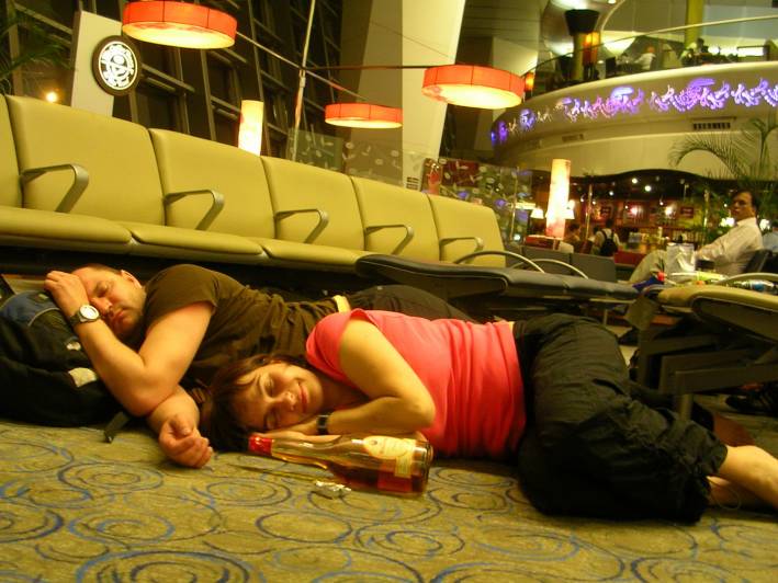 | Дели видели только с самолета,т.к.летели транзитом,ждали рейс до Катманду 9 часов,сгладил ожидание отличный выбор алкоголя в дути фри,результат на фото.Надо сказать что,аэропорт Дели огромных размеров и весь застелен ковролином,поэтому сон на полу ни у кого не вызывает удивление.Ну,полетели дальше.Гималайский хребет под крылом самолета и первый взгляд на Катманду-столицу Непала.Город с миллионными населением.поселились в отеле "Мнаслу",считается крутым,из-за наличия бассейна.