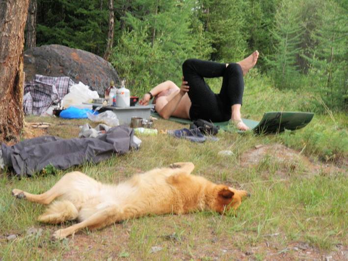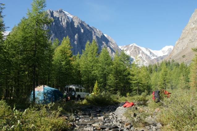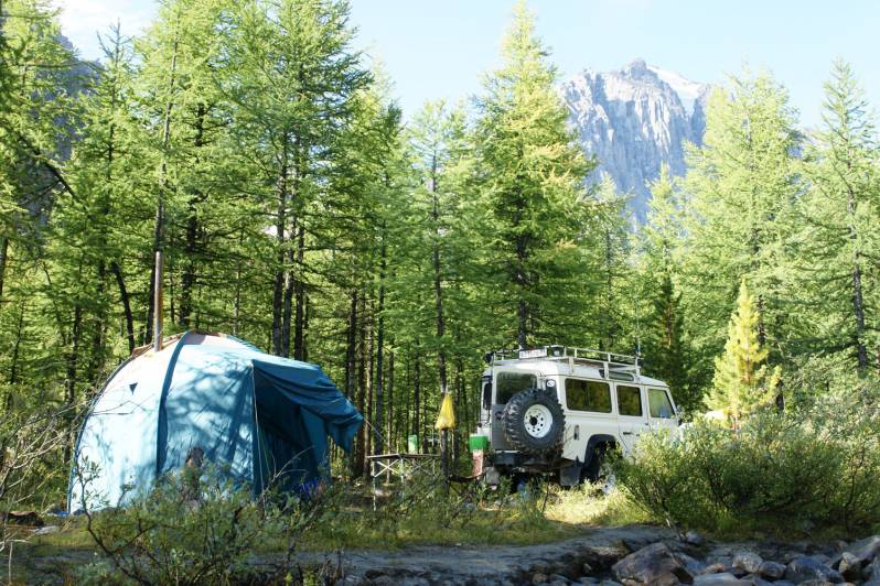 Стали лагерем на берегу одного из рукавов, проехав прямо по руслу. Поставили палатку-баню Алтай - очень удобная вещь