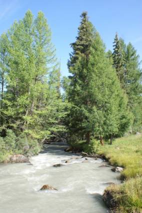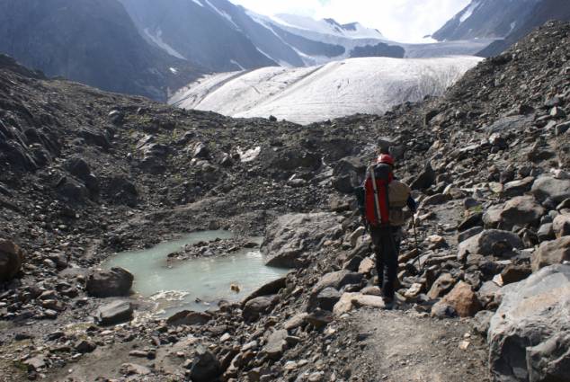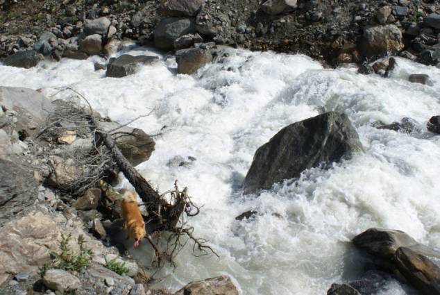 Утром воды мало, больше всего вечером когда максимальное таяние ледников