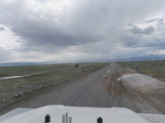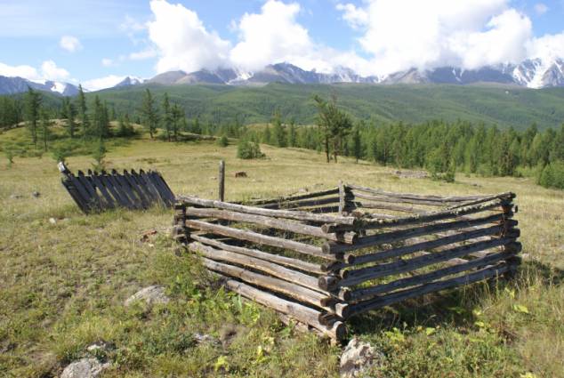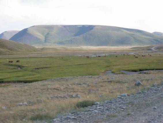 Надо сказать, что сама дорога на Укок, впрочем, как и все на Алтае интересно уже само по себе. Чуйская степь еще суше и каменистее, чем Курайская. Ровное плато окаймлено внезапно вырастающими горами. При въезде в долину Тархаты стоит одноименная застава. Регистрируемся и едем дальше. Раньше мне казалось, что дорога будет пустынна и однообразна, но оказалось, что это не так! Дорога, соединяющая Кош-Агач с Джазатором (казахское название, алтайское – Беляши) хоть и щебеночная, но очень недурна и весьма оживленна. Вдоль дороги много аилов – жилища скотоводов-алтайцев. В первом же аиле мы попросили продать нам барашка. Довольно быстро договорились, что мы заберем только мясо. Правда, при разговоре произошел некоторый казус: