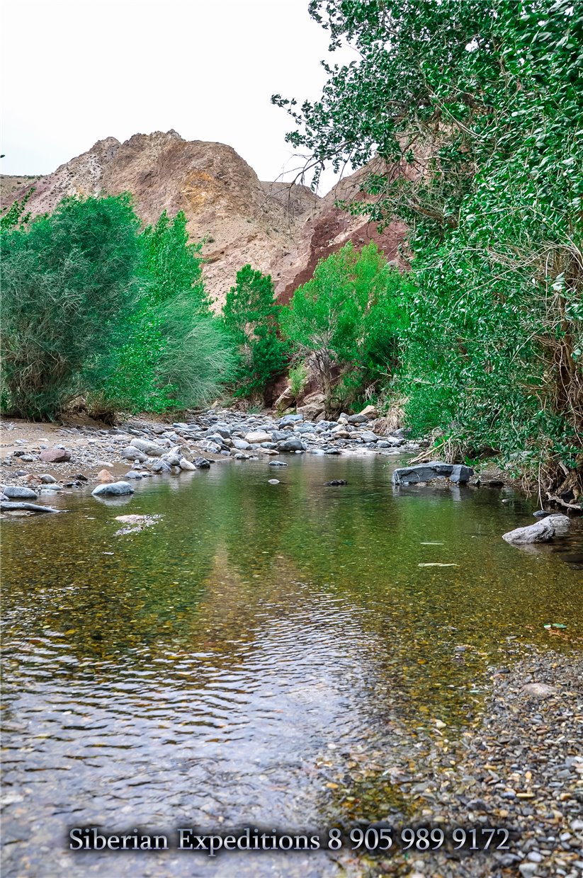 В это время года река Кызыл-Чин очень мелкая, а вечером, после захода солнца, она вовсе пересыхает, и ночью вода в реке не бежит. Дело в том, что в ночное время солнце перестаёт нагревать ледники, которые питают реку. Утром, после восхода солнца, воду "включают", и речка снова функционирует. За день вода от камней нагревается, и после экскурсий самое приятное действие - полежать в "джакузи" и отдохнуть.