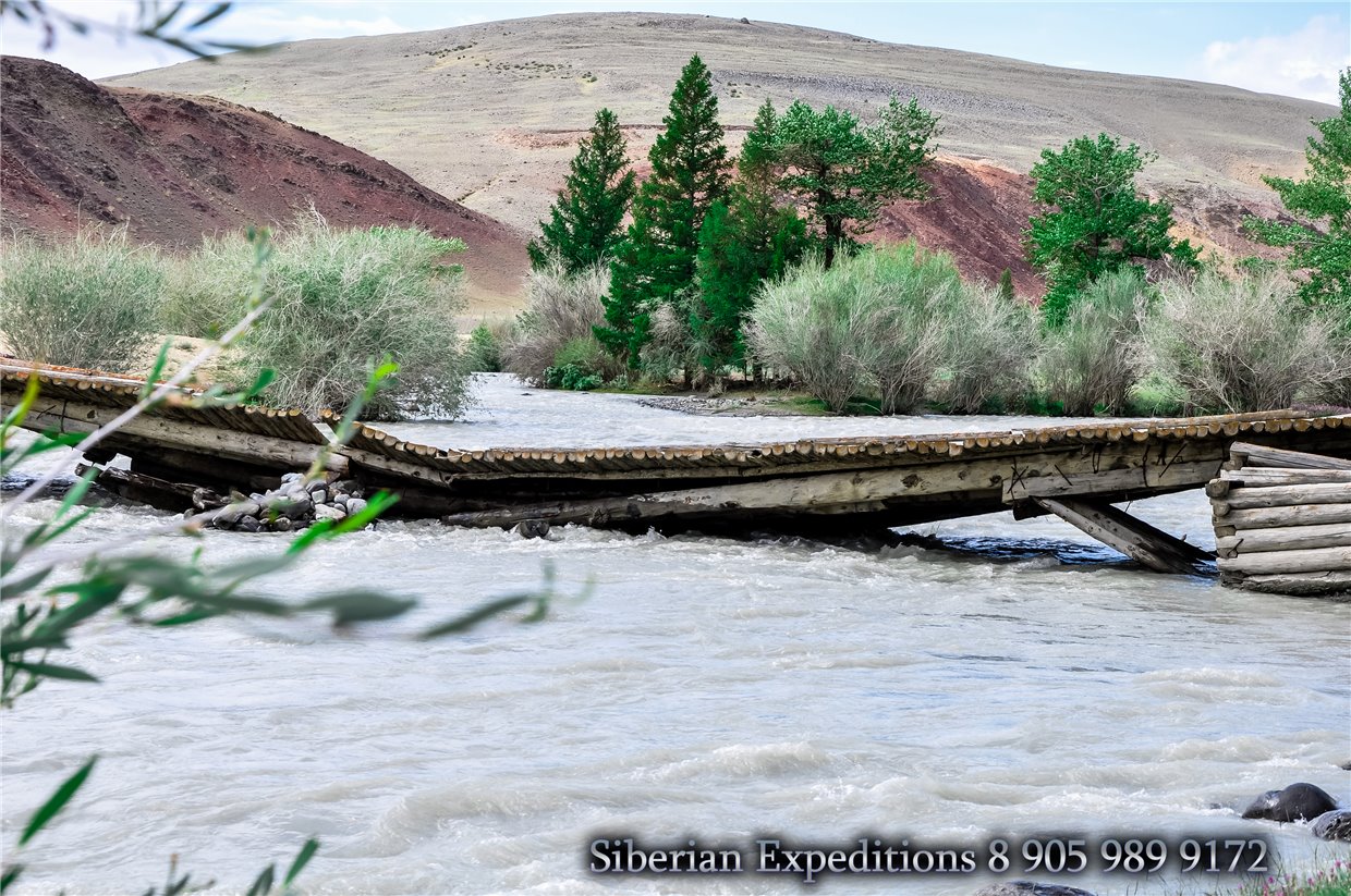 Обследовав одно место с марсианскими пейзажами, переезжаем в другое. Преодолели несколько бродов, подъехали к мостику, тогда он ещё целёхонький был и нечего не подозревая поехали по мосту....
