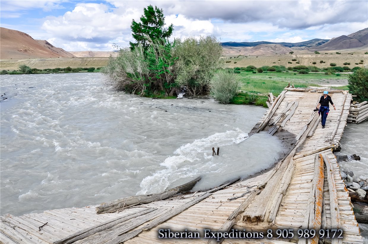 Доехали в аккурат до середины моста как вдруг раздался сильный хруст и земля так резко ушла из под ног... Мост сильно накренило в правую сторону и возникла угроза опрокидывания машины на право, т.е. в реку. Не знаю зачем я повернул руль в право и газу дал, вернее не успел подумать, руки и ноги сами всё сделали.... Короче полетели мы в реку передом и опрокинуться не успели. Передним бампером сильно в дно ударились, вывернули несколько камней на поверхность воды. Задним о край моста долбанулись, очутились в реке, газую, выбрались на середину реки, перевели дух. Доехали до ближайшего острова, отдышались.... Долго искали броды между островами пока не выехали на большой остров, откуда мост начинался.